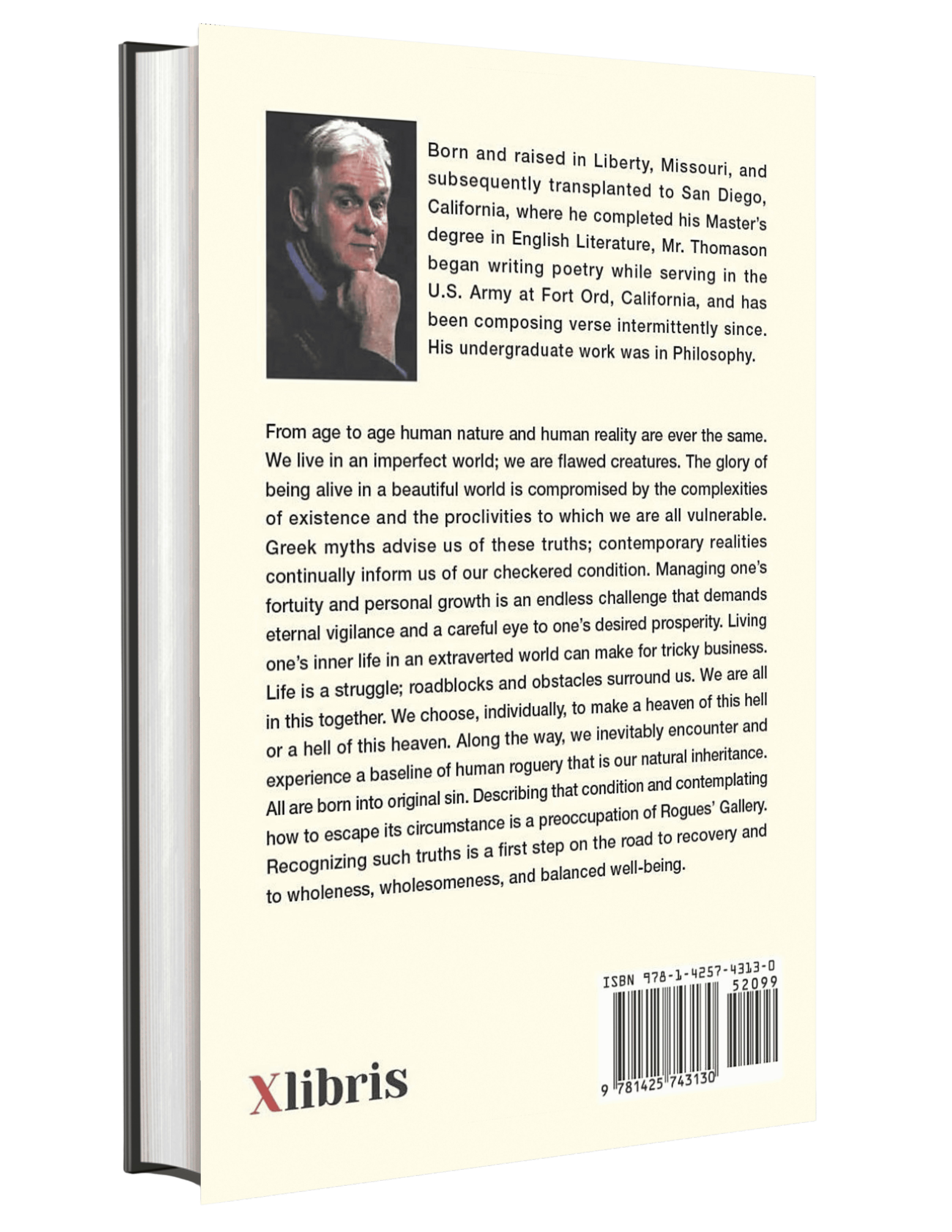We choose, individually, to make a heaven of this hell or a hell of this heaven. Along the way, we inevitably encounter and experience a baseline of human roguery that is our natural inheritance. All are born into original sin. Describing that condition and contemplating how to escape its circumstance is a preoccupation of Rogues’ Gallery. Recognizing such truths is a fi rst step on the road to recovery and to wholeness, wholesomeness, and balanced well-being.